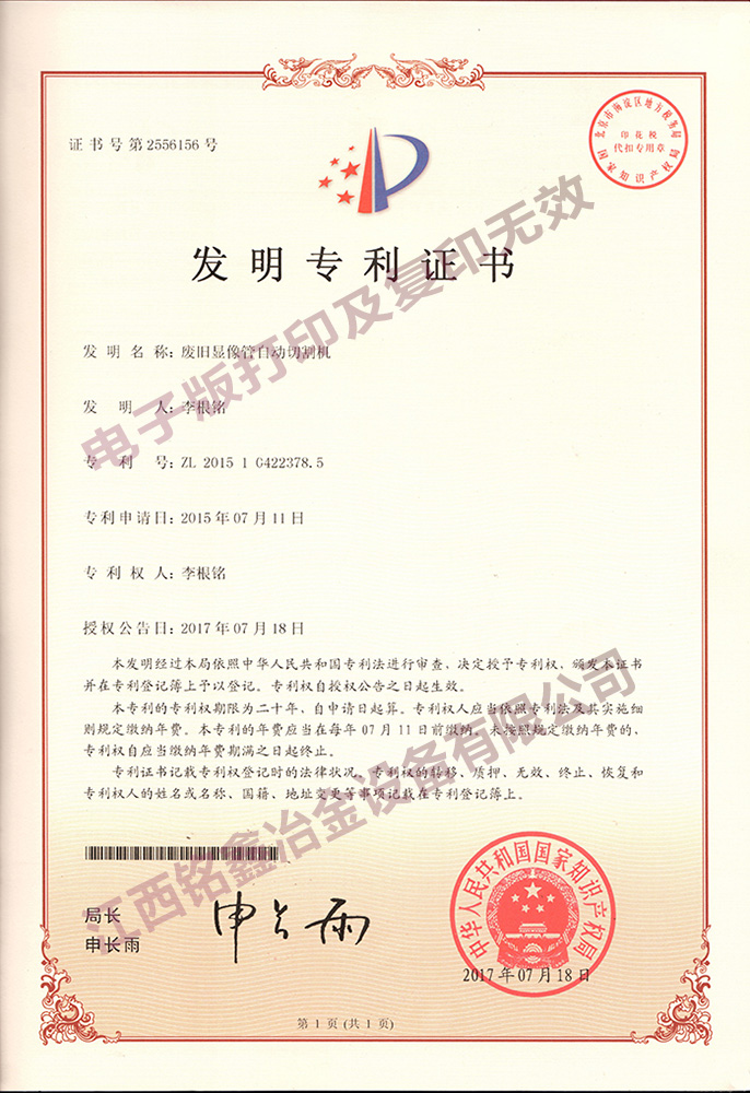 • 廢舊顯像管自動切割機-ZL201510422378.5