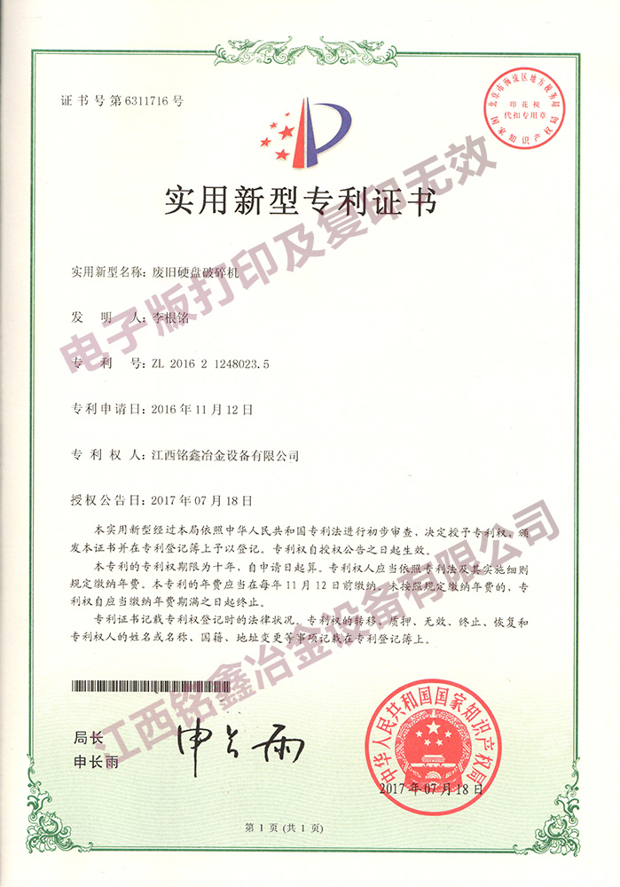 • 廢舊硬盤破碎機-ZL201621248023.5